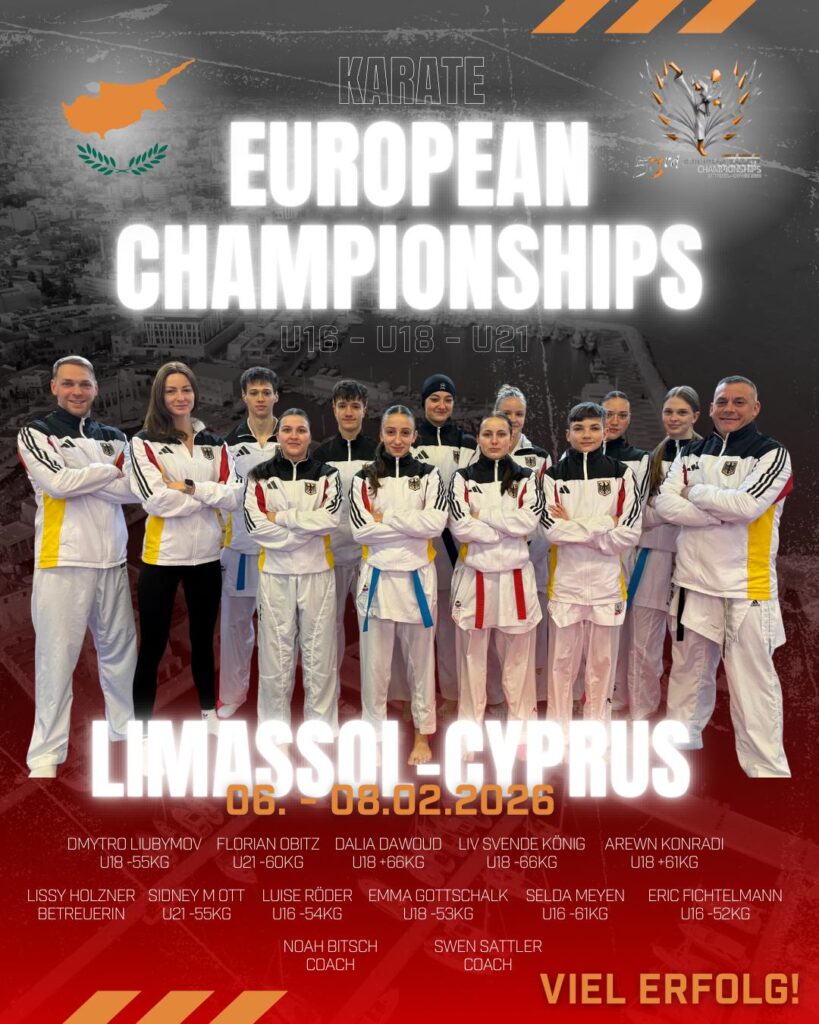 Für den Deutschen Karateverband sind Kumite-Bundestrainer Noah Bitsch, Kumite- Bundesnachwuchstrainer Swen Sattler sowie Teambetreuerin Melissa Holzner im Einsatz.