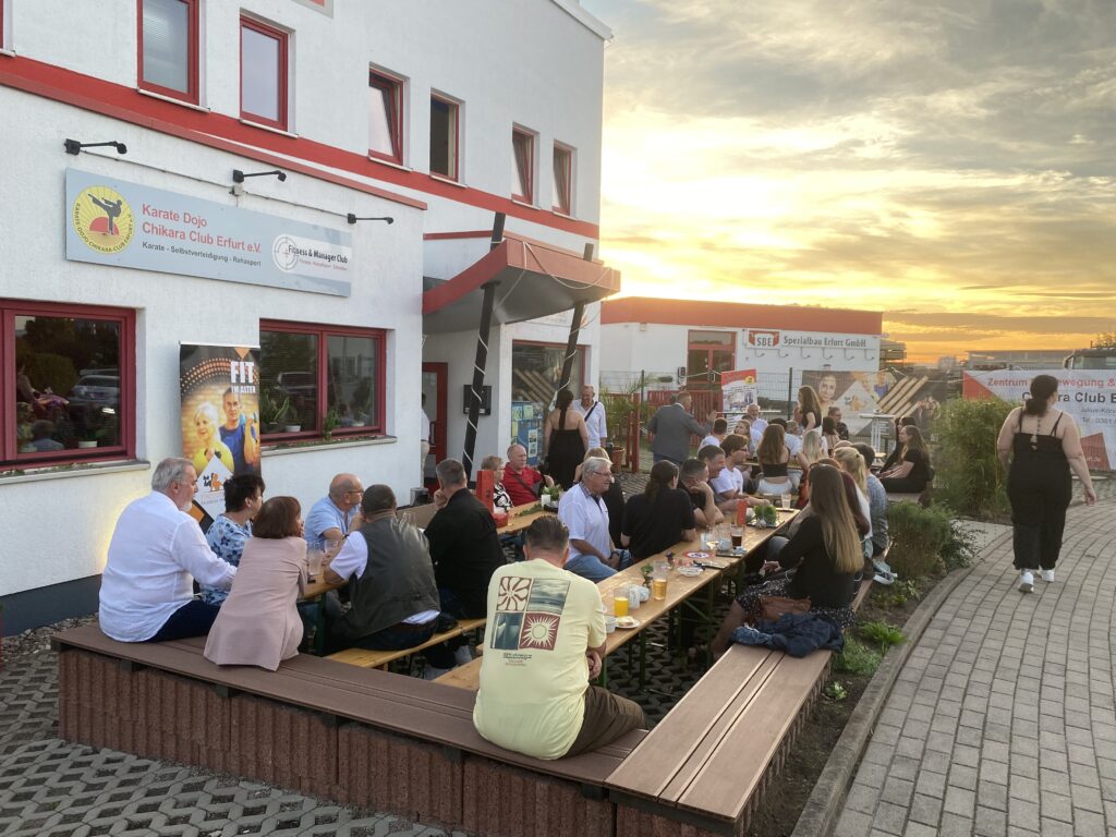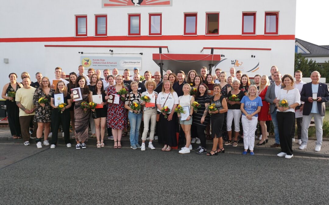 Das Vereinsjubiläum begann mit einer festlichen Veranstaltung, bei der verdiente Trainerinnen und Trainer geehrt wurden. Ehrungen durch den StadtSportBund, den Thüringer Karate Verband, den Deutschen Karate Verband und den Landessportbund (LSB) würdigten das Engagement der Trainer, deren Arbeit als Grundlagen des Vereins gilt. Die Anwesenden lauschten Reden, die nicht nur sportliche Erfolge, sondern vor allem das Schaffen eines sicheren, respektvollen und familienfreundlichen Umfelds in den Mittelpunkt stellten. Gleichzeitig wurden Sponsoren, langjährige Mitglieder und Mitglieder mit besonderem Engagement für ihre Treue und ihren Beitrag zum Vereinsleben gewürdigt.